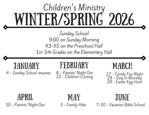 All children are welcome in our worship services. Each week, during worship, a special “Time for Children” talk will be presented for children of all ages. After the “Time for Children”, we will dismiss children ages K5 and younger to go to Children’s Church for Bible stories and activity time. Children’s Church is located on the PDO/Nursery Hall. Parents can pick up their children there after worship.